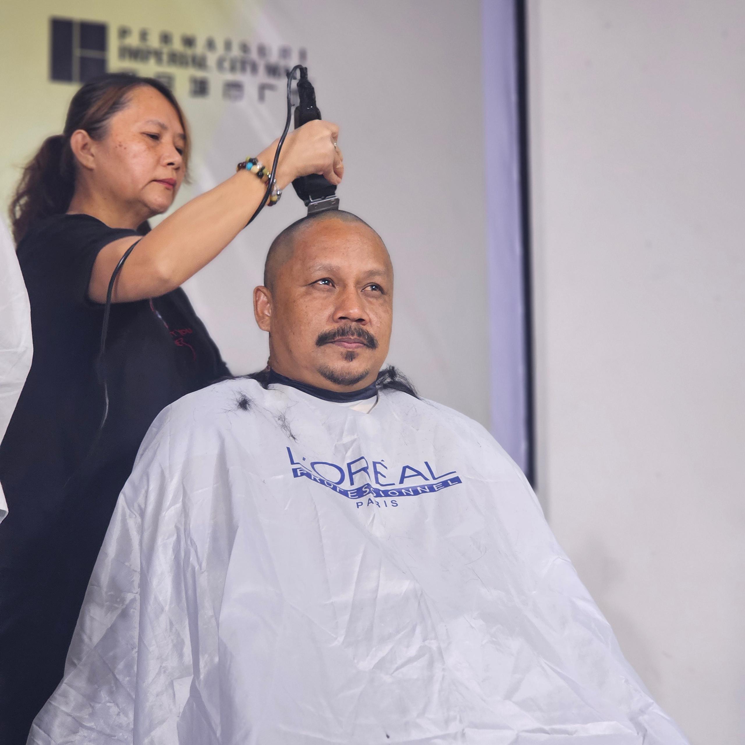 Supporting the event, Ms Siti Juliana Osman, the mother of Nur Qamarina Mardi, a young girl diagnosed with a rare brain tumour in 2023, was the first to shave it all off that morning at Paul and Jennifer Hair & Beauty Salon, one of GoBald’s partner salons located inside the mall. Nur Qamarina’s aunt, Ms. Siti Selmiyah, shaved her hair later that afternoon on stage, joining her sister in support of her niece at the GoBald 2024 campaign.