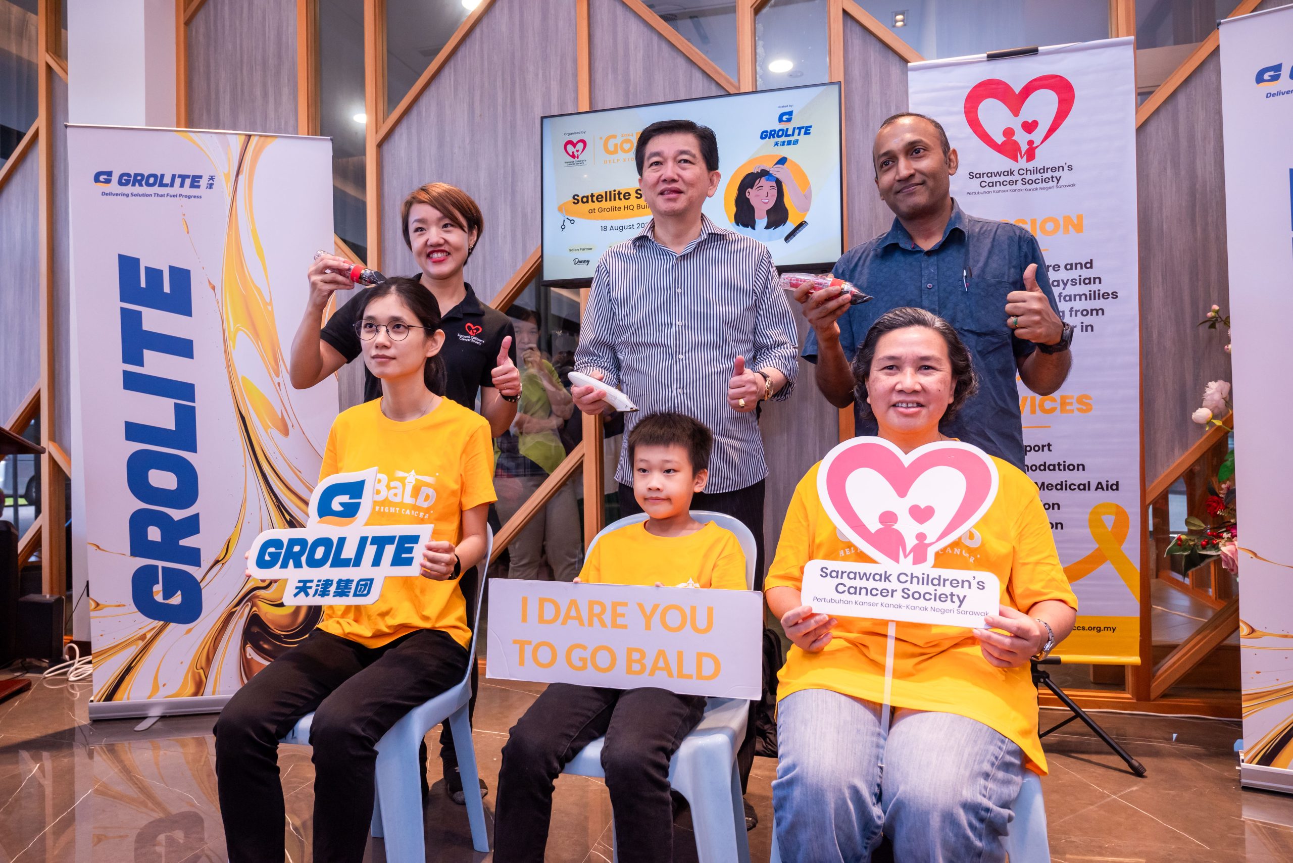 Grolite Group’s fourth blood donation drive featured the first ever partnership with the Sarawak Children’s Cancer Society (SCCS) to host the inaugural satellite shave for GoBald 2024 in Sibu. The event raised RM45,530, and with the additional RM32,000 contributed by Grolite Group, the total amount raised now stands at RM77,530. 27 heads were shaved in solidarity with children battling cancer.